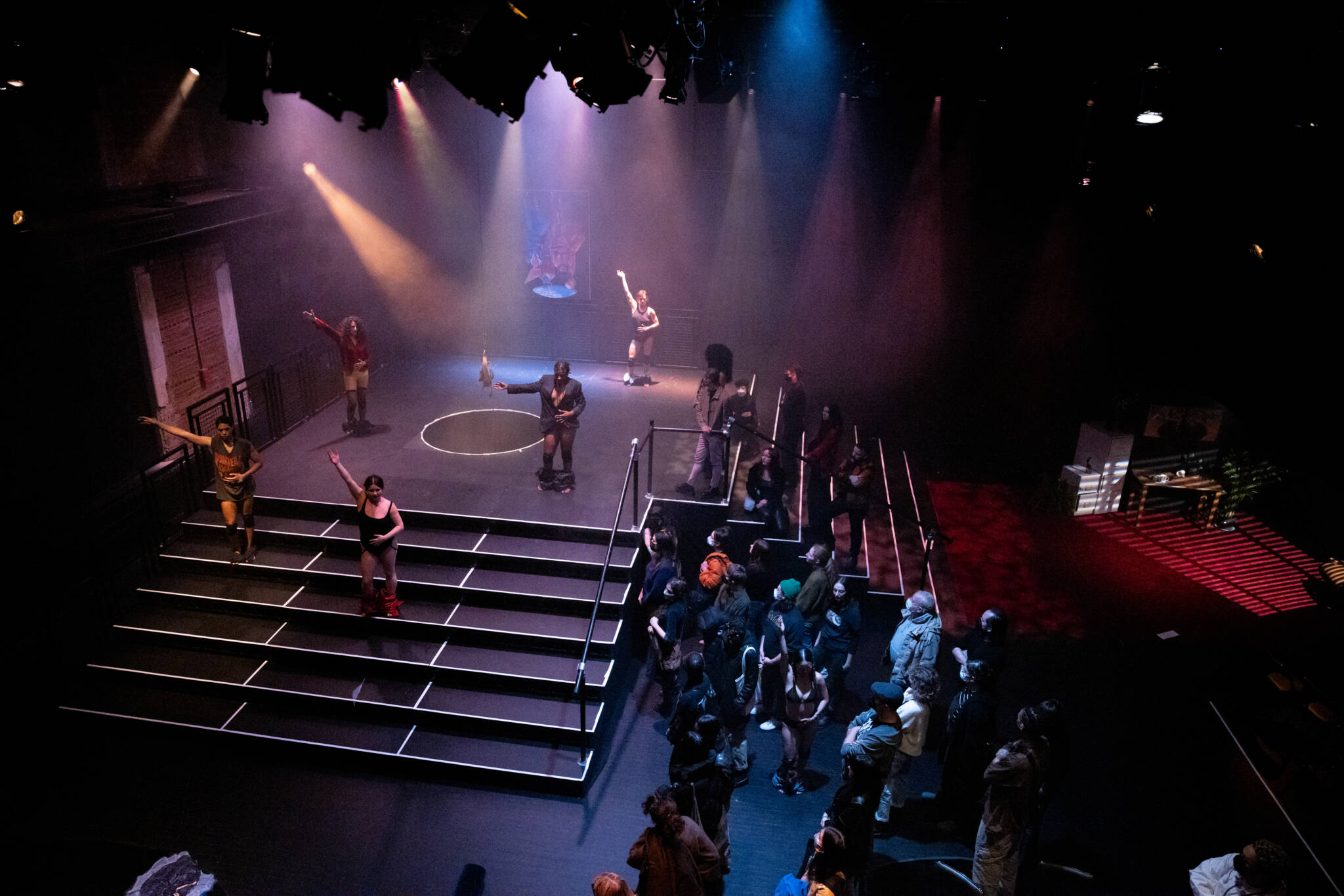 In all things under dog, where two things are always true, Monica Mirabile looks at the ‘mafia’ as an outlaw ecosystem rising from a lack of resources to cultivate a support structure. Working on a therapeutic level within this architecture, Mirabile builds out a collapsing of time from the combined personal histories of the performers and herself—working through questions of grief, trauma, support, and ultimately resilience in family systems and the society they are influenced by. all things under dog travels through symbolic representations of a house—with five distinct rooms dividing The Keith Haring Theatre—and a black hole. Heightening the intimacy of the work, the audience, viewing the piece in small groups, move through the rooms with the performance.